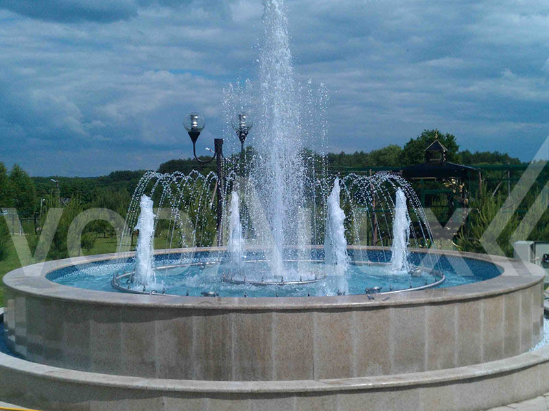 Компания VODALUX выполняет широкий спектр задач в своей области, занимается как огромными цветодинамическими фонтанными комплексами, служащими украшением целого города, так и небольшими фонтанами для частных заказчиков. Один из таких проектов был реализован для частного владения в Калужской области. Классические формы фонтанного комплекса D 320 20S прекрасно вписались в ландшафт. В проекте использовано оборудование FONTANA.