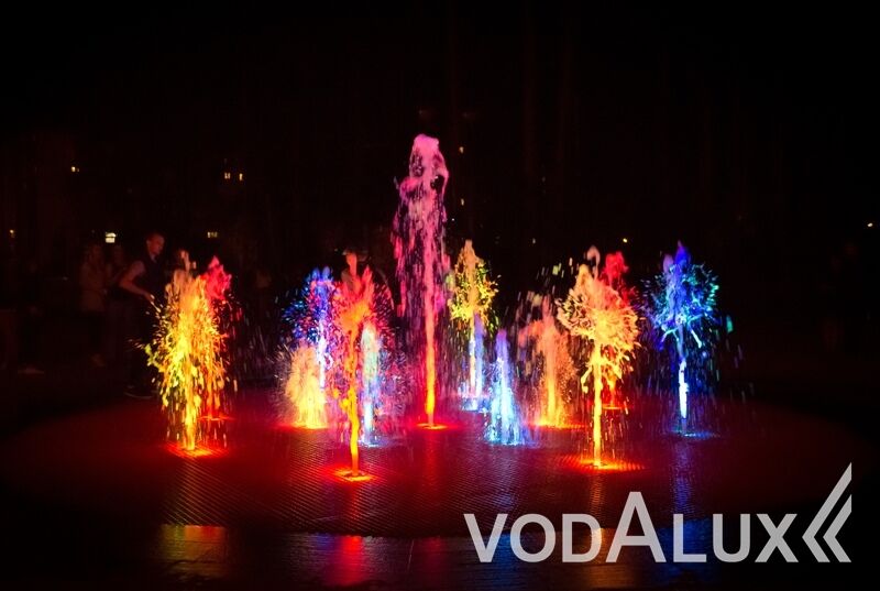 В канун 70-летия Победы в Великой Отечественной войне глава города Липецка Михаил Гулевский и руководитель региона Олег Королев дали старт новому фонтану. Пешеходный цветодинамический фонтан на главной аллее Парка Победы - уже 14-ый фонтанный комплекс на территории города, но абсолютно иной по своему исполнению, без традиционной чаши, со скрытой системой монтажа оборудования. Фонтан занимает площадь 30 кв. м. и декорирован ярко-красным решетчатым настилом. Высота 15 струй около 2 метров.
